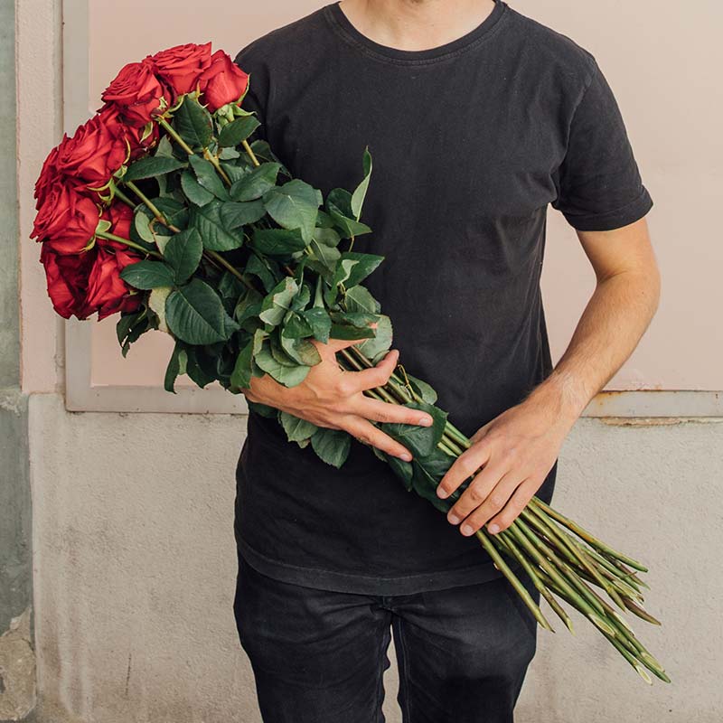 Grossblütige Rosen (80cm) direkt aus Holland. Zu einem Strauss arrangiert, ohne Bindegrün.