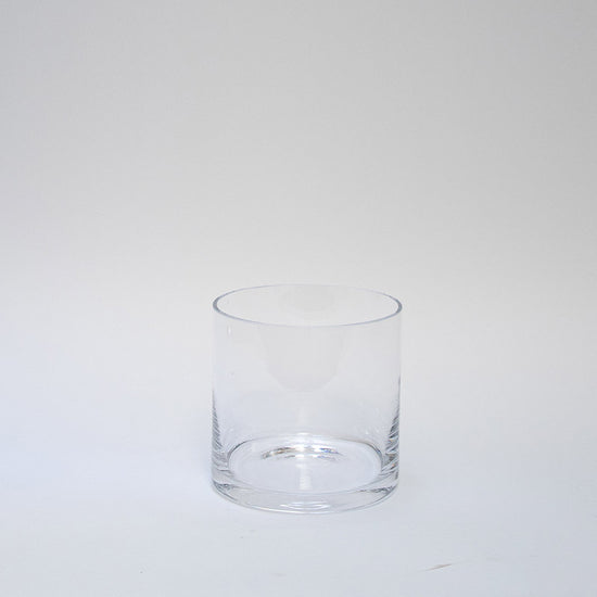 Mundgeblasene, dickwandige, zylinderförmige Glasvasen mit geschliffenem Rand. Hergestellt in Europa.